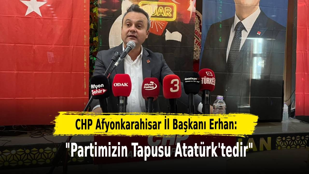 Erhan, “İlçe kongrelerimizin sonuncusunu bugün gerçekleştiriyoruz. Bugüne kadar merkez ilçe başkanlığımızı yapan Büşra Dişçioğlu Çetinöz’e ve yönetim kuruluna teşekkür ediyor, yeni seçilecek ilçe başkanımıza ve yönetim kuruluna şimdiden başarılar diliyorum. Afyonkarahisar’ın tüm ilçelerinde gerçekleştirdiğimiz yoğun bir kongre sürecini geride bırakıyoruz. Bu kongrelerde partimizin iktidarının yönetim kurullarını belirliyoruz. Cumhuriyet Halk Partisi bize Gazi Mustafa Kemal Atatürk’ün emanetidir ve bizi bir arada tutan en önemli değerdir. Bu partinin tapusu sadece Ulu Önderimiz Gazi Mustafa Kemal Atatürk’tedir.” şeklinde konuştu.
