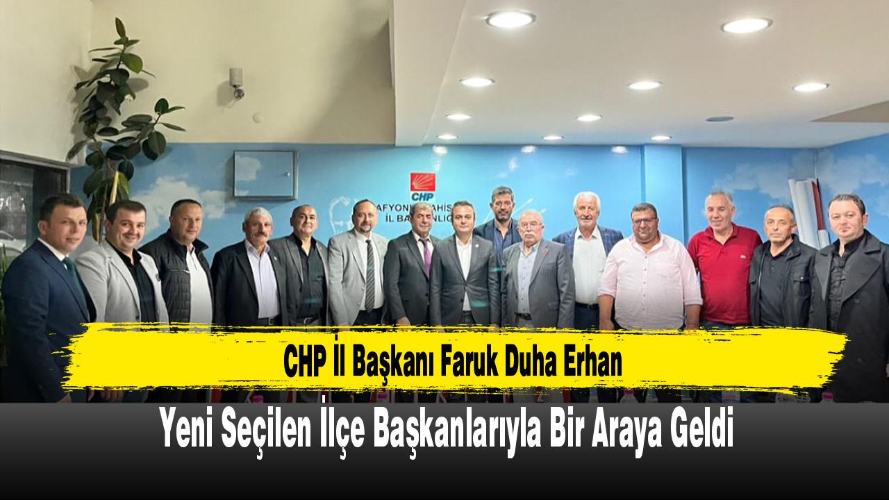 Cumhuriyet Halk Partisi (CHP) Afyonkarahisar İl Başkanlığı’nda önemli bir buluşma gerçekleşti. CHP Afyonkarahisar İl Başkanı Faruk Duha Erhan, yeni seçilen tüm ilçe başkanlarıyla bir araya gelerek istişare toplantısı düzenledi.