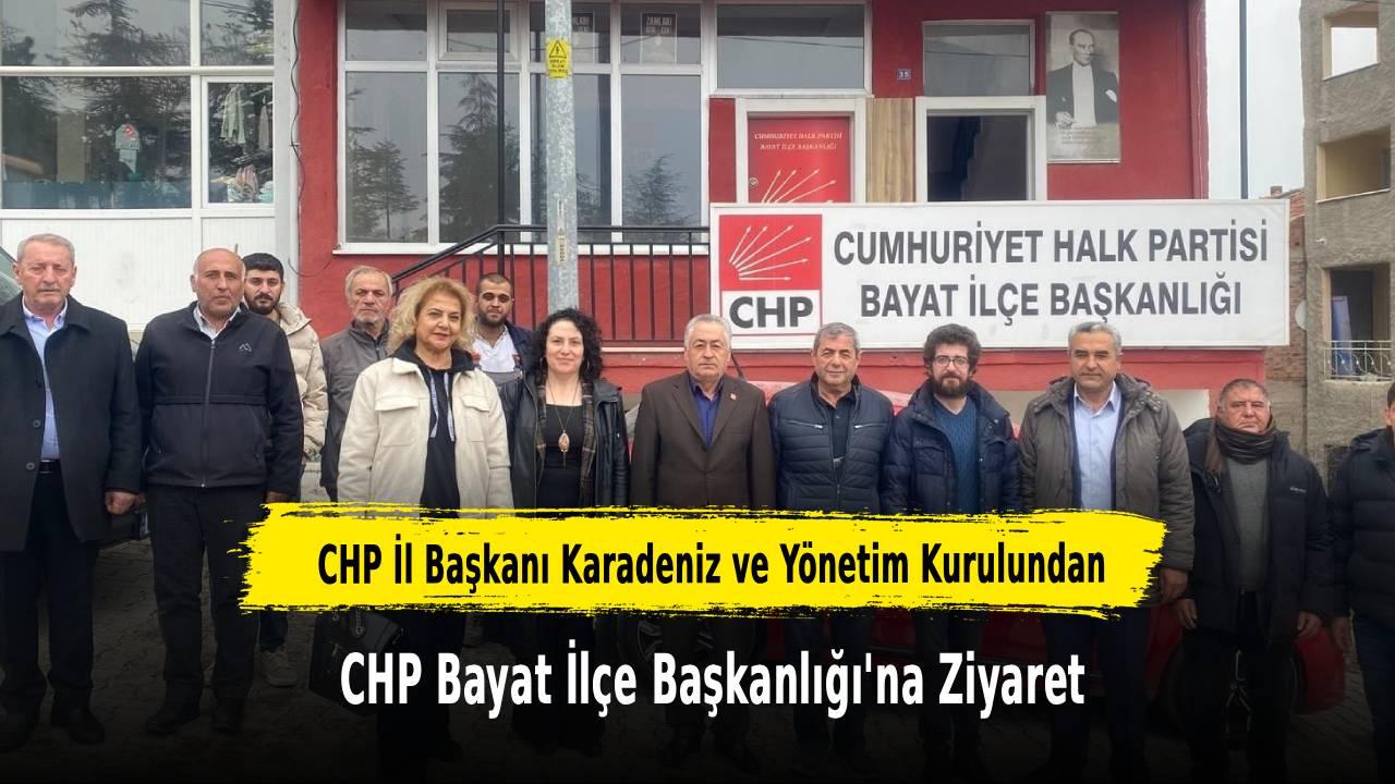 CHP Afyonkarahisar İl Başkanı Hasan Karadeniz ve beraberindeki heyet, Bayat İlçe Başkanlığı'na ziyarette bulundu. Heyet, CHP Bayat İlçe Başkanlığı’nın çalışmaları hakkında bilgi alarak, ilçede yürütülen siyasi faaliyetlere dair görüş alışverişinde bulundu.