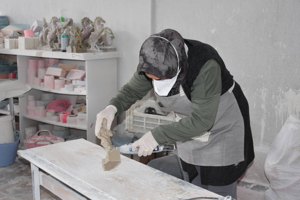 Afyonkarahisar’ın Çobanlar ilçesinde kooperatif bünyesinde çalışan kadınlar, taş tozundan yaptıkları saksıların ve polyesterden ürettikleri dekoratif objelerin satışından elde ettikleri gelirle aile bütçelerine katkı sağlıyor.