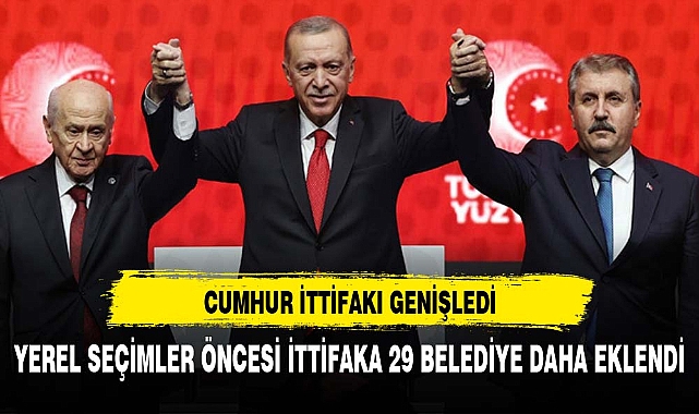 LİDERLER NOKTA KOYACAKÇalışmaya önümüzdeki hafta yapılması planlanan Erdoğan-Bahçeli görüşmesinin ardından son noktanın konulması bekleniyor. Liderlerin onayının ardından çalışma tamamlanarak kamuoyu ile paylaşılacak. Cumhur İttifakı heyeti 26 Ekim'de başlayan süreçte 13 toplantı yaptı. 2019'da yapılan ittifakta AK Parti ve MHP 30 büyükşehir ve liderlerin memleketi Rize ve Osmaniye'de ittifak yapmıştı. 31 Mart 2024 seçimleri için yapılan çalışmada ise ittifakın kapsamı genişledi.