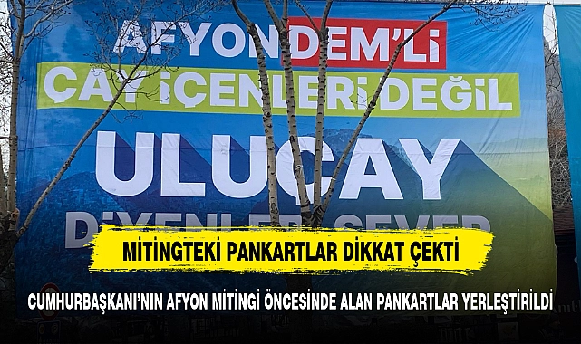 AK Parti'nin Afyonkarahisar Belediye Başkan adayı Hüseyin Ceylan Uluçay için ise özel bir pankart asıldı. Miting alanına asılan "Biz Deml çay sevmeyiz, Uluçay severiz" pankartı, Afyonakrahisar'ın AK Parti Adayı Uluçay'ın arkasında olduğunu gösterirken pankart ile kamuoyunda Terör Örgütü'nün uzantısı olarak bilinen Dem Parti'ye göndermede bulunuldu.>>EVREN ATCI