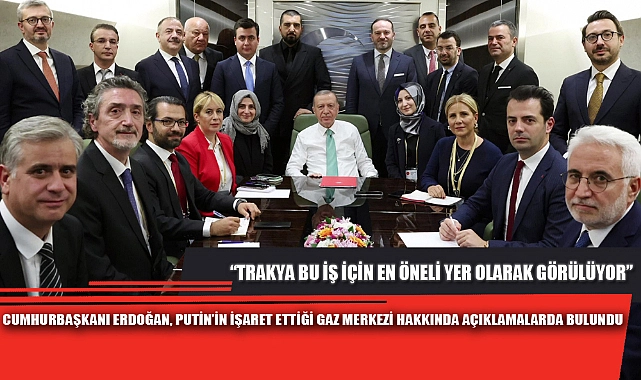 Rusya Devlet Başkanı Putin'in ‘Türkiye'de gaz merkezi kurulması' açıklamasını değerlendiren Cumhurbaşkanı Erdoğan şöyle devam etti:“İfade edildiği şekliyle böyle bir dağıtım merkezi için bu iş için tabii ki Trakya en önemli yer olarak görülüyor. Biz başta Enerji ve Tabii Kaynaklar Bakanlığımıza ve Rusya tarafında ilgili kuruma müşterek bir çalışma yapmaları talimatını Sayın Putin ile birlikte verdik. Orada bu çalışmayı yapacaklar. En uygun yer neresiyse bu dağıtım merkezini orada inşallah kurmuş olacağız. Bizim ulusal anlamda bir dağıtım merkezimiz var ama tabii şimdi bu uluslararası bir dağıtım merkezi olacak. Bu konuyla ilgili Enerji ve Tabii Kaynaklar Bakanlığımız ile Rusya tarafı çalışmayı yapıp bize sunacaklar ve ondan sonra da adımı atmış olacağız. Burada bekleme diye bir şey yok. Kararı bugün hemen süratle Enerji ve Tabii Kaynaklar Bakanımıza verdik. Aynı şekilde aynı anda Rusya'dan (Gazprom Başkanı) Miller de bu toplantıdaydı, o da talimatı aldı. Şimdi arkadaşlarımız birbirleriyle görüşmek suretiyle çalışmaya başlayacaklar. Güvenlik noktasında biz her türlü adımı atarken tabii ki burada da güvenlik neyi gerektiriyorsa bu güvenlik ağımızı da süratle kuruyor ve ona göre çalışmalarımızı sürdürüyoruz. “