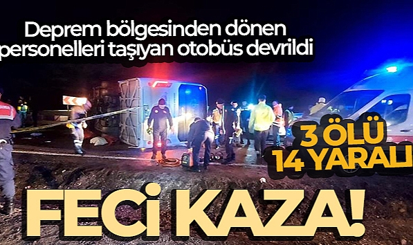 Edinilen bilgiye göre, deprem bölgesi Malatya'ya giden Bağcılar Belediyesi personellerini taşıyan 34 FIR 436 plakalı otobüs, İstanbul'a dönerken Pınarbaşı ilçesi Karahalka mevkiinde sürücüsünün direksiyon hakimiyetini kaybetmesi sonucu devrildi.