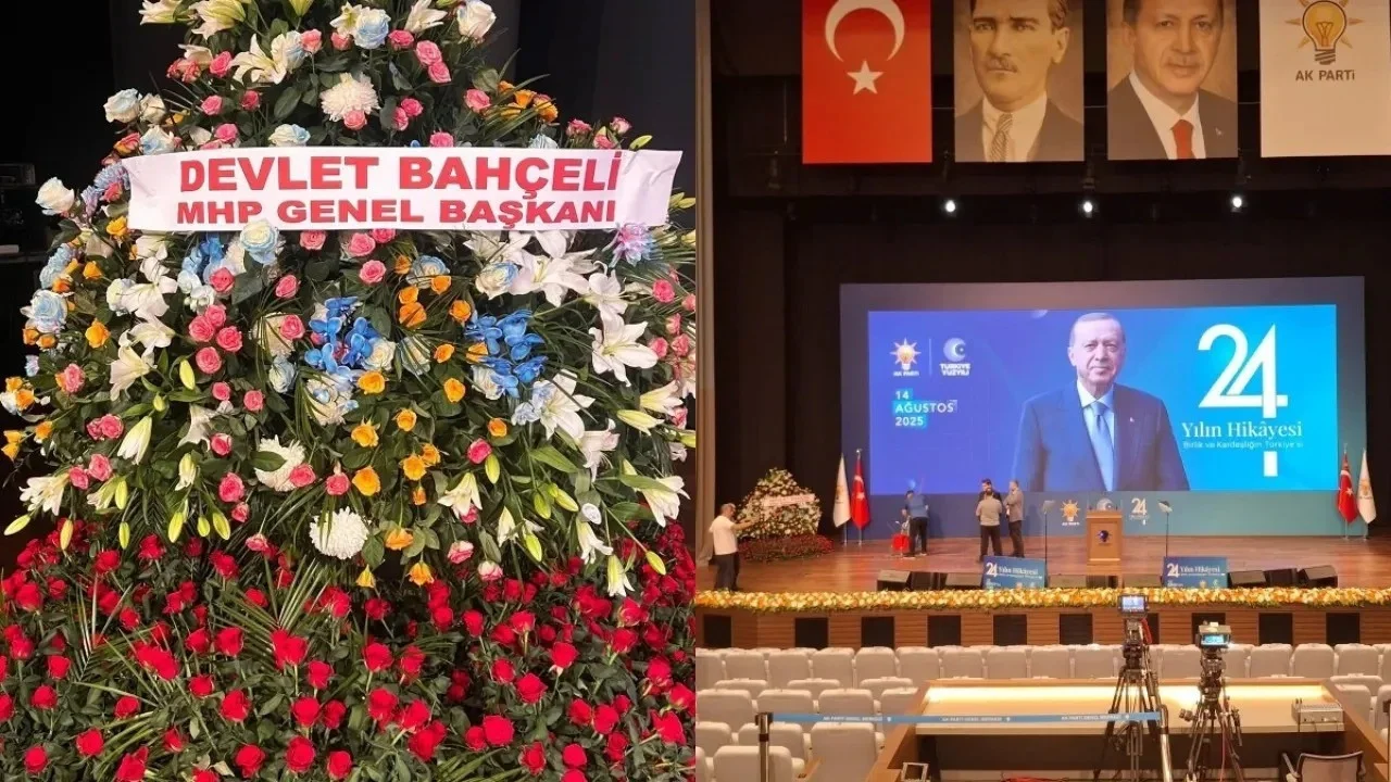 Cumhur İttifakı ortağı olan Devlet Bahçeli, AK Parti Kongre Merkezi’ne gönderdiği çiçek aranjmanıyla dikkat çekti. Aranjmanda: