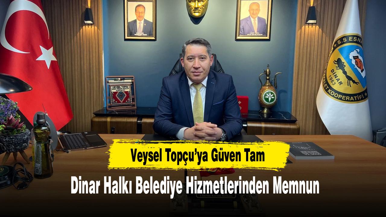 Afyonkarahisar’ın Dinar ilçesinde yapılan kamuoyu araştırmasının sonuçları açıklandı. AHSU Araştırma Şirketi tarafından gerçekleştirilen memnuniyet anketine göre, Dinar halkının büyük bir çoğunluğu Belediye Başkanı Veysel Topçu ve belediye hizmetlerinden memnun olduğunu belirtti.