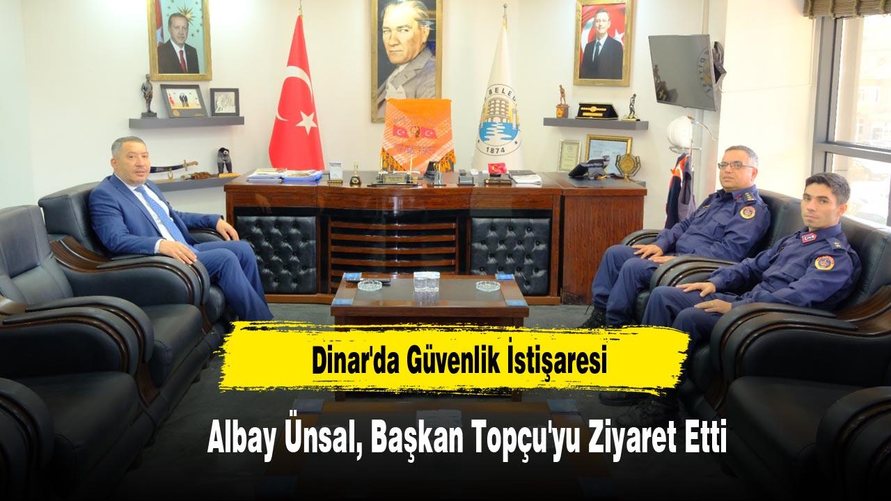 Ziyarette Albay Ünsal'a Dinar İlçe Jandarma Komutanı Jandarma Üsteğmen Hamza Tunç da eşlik etti. Gerçekleşen görüşmede ,Dinar ilçesindeki mevcut güvenlik hizmetleri başta olmak üzere, kamu kurumları arasındaki iş birliğini daha da güçlendirmeye yönelik karşılıklı fikir alışverişleri ve istişareler gerçekleştirildi.