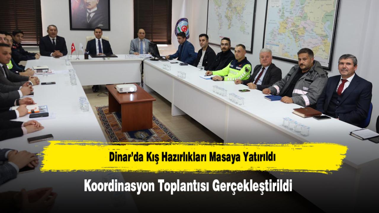 Toplantıda; Ulaşım güvenliği, Karla mücadele çalışmaları, Acil durum planlaması, Elektrik ve doğal gaz kesintilerine karşı alınacak önlemler, Sağlık ve güvenlik tedbirleri gibi başlıklar masaya yatırıldı. Dinar Kaymakamlığı tarafından yürütülecek koordineli çalışmalarla, ilçe halkının kış mevsimini sorunsuz geçirmesi hedefleniyor.