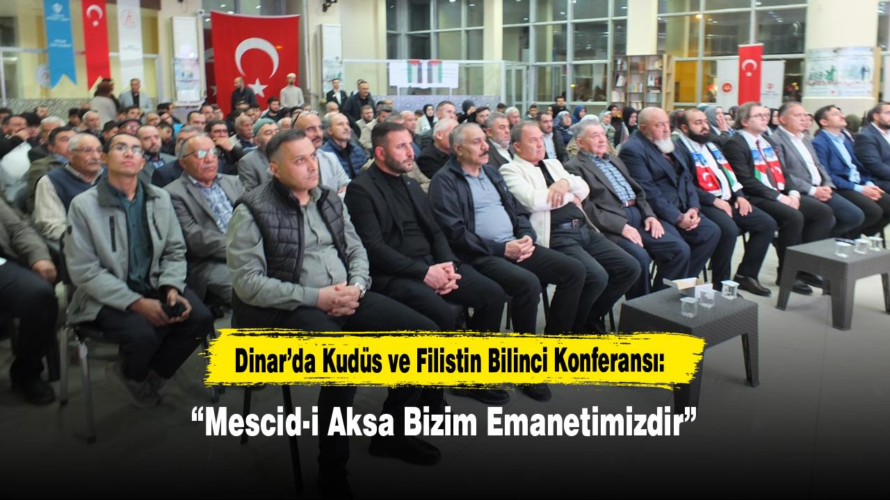 Afyonkarahisar Dinar İlçe Müftülüğü tarafından Ünal Kılıç İlim ve Kültür Merkezi’nde "Peygamber Efendimiz (sallâllâhu aleyhi ve sellem), Cami ve Namaz-İlk Kıblemiz Mescid-i Aksa, Kudüs Bilinci ve Filistin Davası" konulu konferans düzenlendi.
