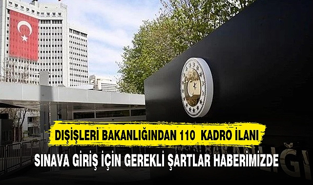 Dışişleri Bakanlığı 110 personel alımı yapacağını duyurdu. İlanda başvuru tarihlerine ve şartlarına yer verildi. Başvurular 15 Ağustos 2023 Salı günü saat 09:00’da başlayacak ve 29 Ağustos 2023 Salı günü saat 18:00’de sona erecektir. Başvurular, e-Devlet üzerinden “Dışişleri Bakanlığı - Kariyer Kapısı Kamu İşe Alım” hizmeti veya “Kariyer Kapısı” https://isealimkariyerkapisi.cbiko.gov.tr internet adresi üzerinden elektronik ortamda yapılacak.