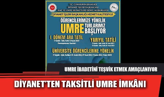 Bu kapsamda 2022 yılı ara tatil dönemi ile 2023 yılı yarıyıl tatilinde düzenlenecek umre turlarında detaylar belli oldu. Diyanet İşleri Başkanlığınca açıklanan programa göre; öğretmen, öğrenci ve veliler indirimli umre turlarından yararlanabilecek. Ödemelerin, yüzde 40'ı peşin olmak üzere geri kalan kısmı anlaşmalı finans kurumlarından 3 taksit halinde yapılabilecek. Öğretmen, öğrenci ve velilerin; bilgi, görgü, tecrübe, dini duygu ve motivasyonlarına katkı sağlamak amacıyla, alanında uzman din görevlileri rehberliğinde düzenlenecek umre turları kapsamında Mekke-i Mükerreme ve Medine-i Münevvere'de çeşitli ziyaretler de gerçekleştirilecek. Umre yolcuları hacumreegitim.hac.gov.tr ve Diyanet Hac ve Umre Rehberi mobil uygulaması üzerinden umre ibadetinin yapılışına dair detaylı bilgiye ulaşabilecek. >>YASİN AY