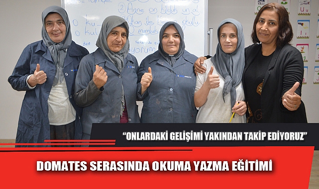 Hüdai Kaplıcaları bölgesindeki jeotermal domates serasının yetkilileri, işe giriş işlemlerini parmak basarak tamamlayan 7 kadının okuma yazma öğrenmesi için kurs açmaya karar verdi. Okuma yazma bilmeyen işçiler, İlçe Kaymakamlığı ve Milli Eğitim Müdürlüğünün onayıyla iki ay önce sınıf öğretmeni Hatice Tural ile firmanın tahsis ettiği odada eğitim öğretime başladı. Hafta sonu mesai arasında 2'şer saat aldıkları eğitime defterleri ve kitaplarıyla katılan kadınlar, hem iş sahibi olmanın hem de okuma yazma öğrenmenin mutluluğunu yaşıyor. Kadınlar, eğitimin ardından işlerine kaldıkları yerden devam ediyor.