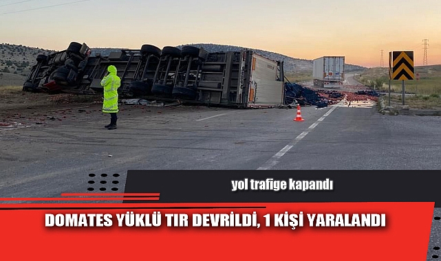 DOMATES YÜKLÜ TIR DEVRİLDİ, 1 KİŞİ YARALANDI