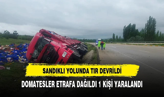 Kaza, Sandıklı ilçesi Başaağaç mevkiinde meydana geldi. Edinilen bilgilere göre, F.A., idaresindeki 26 B 3981 plakalı domates yüklü tır sürücüsünün henüz belirlenemeyen bir sebepten ötürü direksiyon hakimiyetini kaybetmesi sonucu kontrolden çıktı. Savrulan araç ardından şarampole girip devrildi. Kazada araç içerisinde bulunan Ü.T., isimli şahıs yaralandı. Kazanın ardından çevredekilerin haber vermesi ile bölgeye jandarma ve 112 Acil servis ekipleri sevk edildi. Ü.T., olay yerine gelen ambulans ile Sandıklı Devlet Hastanesine kaldırıldı. Yaralının sağlık durumunun ciddiyetini koruduğu bildirildi.