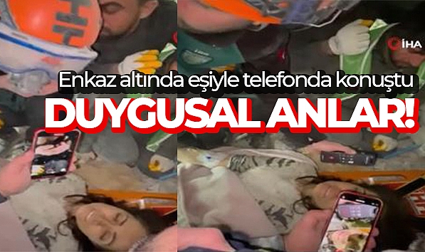 Enkazdan kurtarma çalışmalarında ekiplerin yanındaki kadının eşi ile telefonda konuşturulduğu anlar duygulandırdı