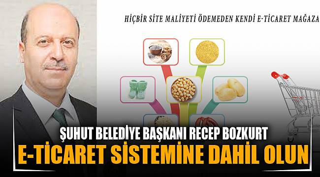 Şuhut Belediye Başkanı Recep Bozkurt, Afyonkarahisar Valiliği’nin tüm il genelinde başlatmış olduğu e-ticaret sistemine, başvuru yapmaları konusunda Şuhutlu hemşerilerine çağrıda bulundu.