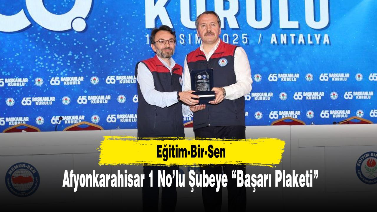 Eğitim-Bir-Sen’in 20. Türkiye Buluşması, Türkiye genelinden şube yönetimleri, ilçe temsilcileri ve kadın komisyonlarının katılımıyla Ankara’da gerçekleştirildi. Toplantıya 2 bini aşkın teşkilat yöneticisi katılırken, Afyonkarahisar adına önemli bir gurur yaşandı. Eğitim-Bir-Sen Genel Başkanı Ali Yalçın, Afyonkarahisar 1 No’lu Şubeyi, Şube Başkanı Mustafa Arslan’ın adına “Başarı Plaketi” ile ödüllendirdi.