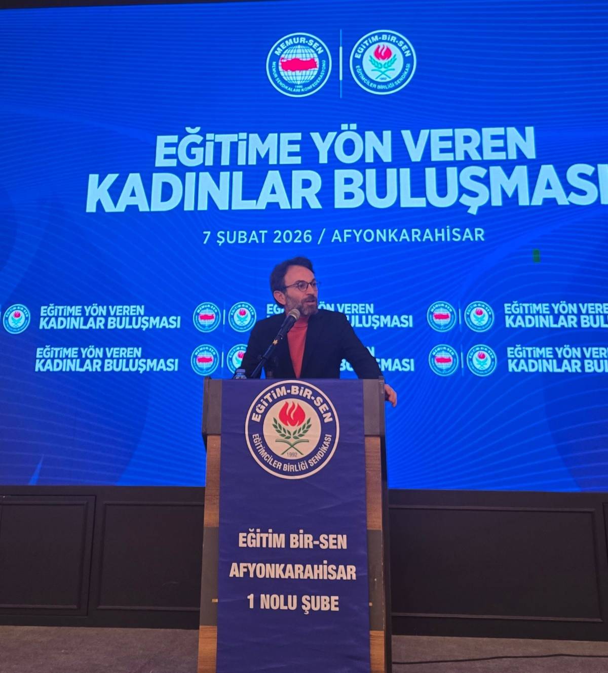 Programda konuşan Eğitim-Bir-Sen Afyonkarahisar 1 Nolu Şube Başkanı Mustafa Arslan, eğitim camiasının gündeminde yer alan öğretmen atama ve yer değişikliği konularına değindi.