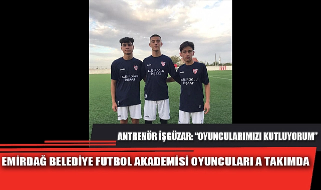 Futbol Akademi sorumlusu Antrenör Seçkin İşgüzar: ‘’Oyuncularımızı kutluyorum. Haziran ayında kurmuş olduğumuz Futbol Akademimizle bu gençlerimiz ilk defa lisanslı sporcu oldular. 5 ay gibi kısa sürede sıkı bir çalışmayla A takımımıza yükselmeyi başardılar. Emirdağlı çocuklarımızın elinden tutmak için çok çalışıyoruz. Bu gençlerimizin buralara gelmesinde bizlerden desteklerini hiç bir zaman esirgemeyen ve akademimizin kurulmasında büyük çabaları olan Belediye Başkanımız Serkan Koyuncu’ya çok teşekkür ediyoruz. Ayrıca gençlerimize A takımda şans veren Gürsoy Turan hocamızada teşekkür ederiz. İnşallah alttan daha birçok Emirdağlı gencimiz gelecek. Hem ülke futboluna hem belde takımımıza birçok genç kazandıracağımıza inanıyoruz. Yakında U16 liginde gençlerimiz beldemizi temsil edecekler, tüm halkımızıda maçlarımıza bekliyoruz‘’dedi. Emirdağ Belediyesi Futbol Akademisi 2010-2009-2008-2007-2006-2005 yaş doğumlu sporcularla hafta içi her gün Emirdağ ilçe stadyumunda 17.30-19.30 arası antrenmanlarına devam ediyor. >>Hüseyin ER