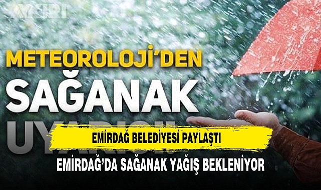 Emirdağ Belediyesi, yaklaşan olumsuz hava koşullarına karşı vatandaşları uyardı. Belediyenin sosyal medya hesaplarından yapılan paylaşımda, "Hemşerilerimizin Dikkatine ❗ İlimiz genelinde gök gürültülü sağanak yağış beklenmektedir. Olumsuz hava koşullarına karşı dikkatli ve tedbirli olalım" ifadeleri kullanıldı.