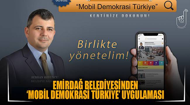 Emirdağ Belediyesi, vatandaşlara daha iyi ve hızlı bir hizmet sunabilmek için ‘Mobil Demokrasi Türkiye’ uygulamasını hayata geçirdi. Vatandaşlar artık Emirdağ Belediyesi ile ilgili haberleri tek dokunuşla ulaşabilecekler ve çek-gönder modülü sayesinde kolaylıkla fotoğraf ekleyip şikayetlerini gönderebilecekler.