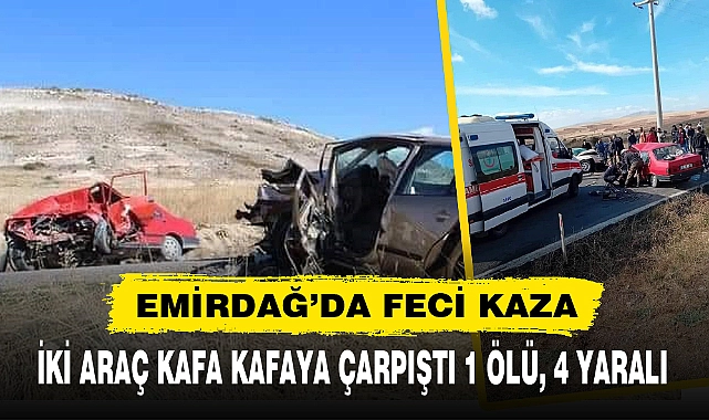 Kaza; Emirdağ-Yunak karayolu 8. Kilometresinde meydana geldi. Edinilen bilgilere göre iki otomobil direksiyon hakimiyetini kaybetmesi sonucu kafa kafaya çarpıştı. Çarpışmanın etkisiyle araçlar her iki araçta hurdaya dönerken, araçta bulunan Mehmet Yağcı (38) olay yerinde hayatını kaybederken 4 kişide yaralandı. Yaralılar Yunak ve Akşehir Devlet hastanelerine sevk edilerek tedavi altına alındı. Kazada hayatını kaybeden Mehmet Yağcı ise Emirdağ Devlet hastanesi morguna kaldırıldı. Jandarma ekipleri kazaya ilişkin inceleme başlattı.