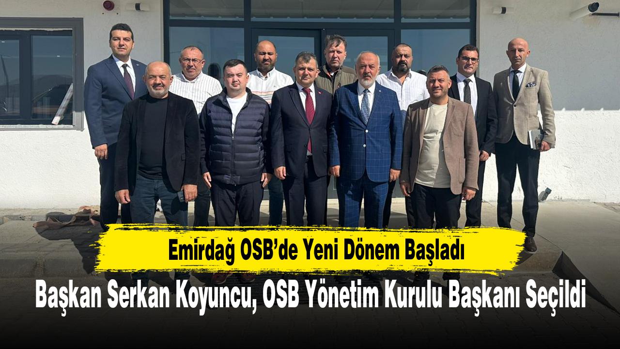 Emirdağ Organize Sanayi Bölgesi’nin (OSB) yeni yönetimi belirlendi. Emirdağ Belediye Başkanı Serkan Koyuncu, OSB Yönetim Kurulu Başkanlığına seçilerek yeni dönemin ilk adımını attı.