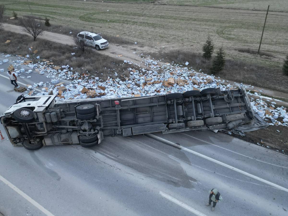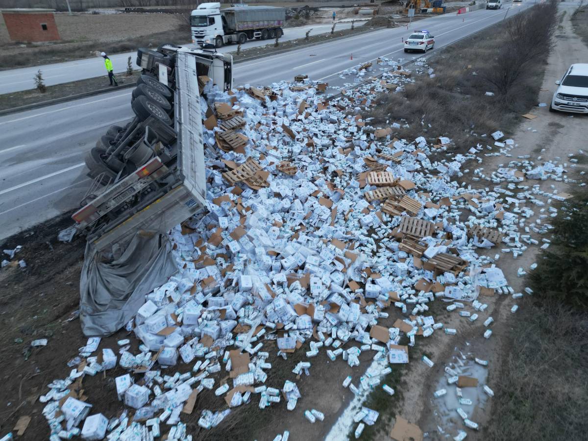 Afyonkarahisar'da yaklaşık 25 ton pastörize süt yüklü tırın kontrolden çıkarak devrilmesi sonucu karayolu yaklaşık yarım saat çift yönlü trafiğe kapandı.