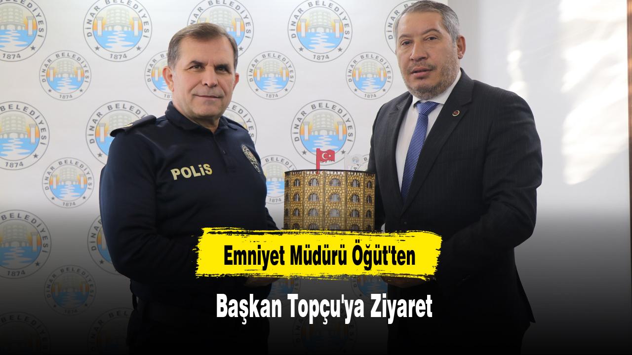 Dinar İlçe Emniyet Müdürü Bayram Öğüt, Dinar Belediye Başkanı Veysel Topçu'yu makamında ziyaret etti.
