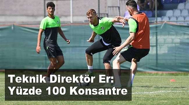 Yeni sezon hazırlıklarını ilimizde sürdüren Bursaspor’da Teknik Mustafa Er, oyuncularını uyardı. “99 demiyorum, yüzde 100 konsantre olacaksınız. Gelişmek istiyorsanız bunları yapacaksınız” dedi.