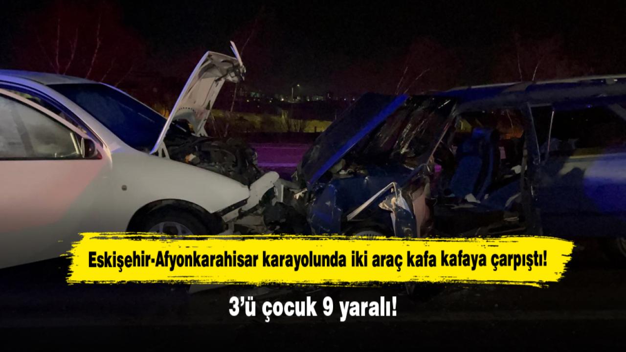 Eskişehir-Afyonkarahisar karayolunda yağmurdan dolayı kayganlaşan yolda kontrolden çıkan otomobil, karşı şeride geçerek bir başka araçla kafa kafaya çarpıştı. Kazada 3'ü çocuk 9 kişi yaralanırken, 5 yaşındaki çocuğun durumunun ağır olduğu öğrenildi.