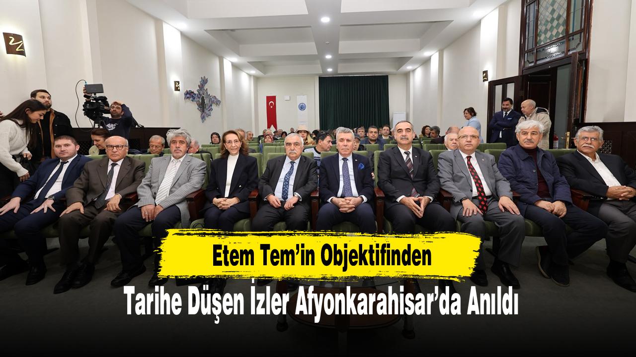 Fotoğraf sanatçısı Etem Tem, Afyonkarahisar’da düzenlenen bir konferansla anıldı. Atatürkçü Düşünce Derneği (ADD) Afyonkarahisar Şubesi tarafından Afyon Kocatepe Üniversitesi (AKÜ) Rıza Çerçel Kültür Merkezi’nde gerçekleştirilen “Etem Tem’in Hatıraları” konulu konferansa; Afyonkarahisar Vali Yardımcısı Yalçın Sezgin, Şuhut Belediye Başkanı Muhittin Özaşkın, Afyonkarahisar Sağlık Bilimleri Üniversitesi Rektör Yardımcısı Prof. Dr. İbrahim Keleş, önceki dönem Belediye Başkanı ve İl Genel Meclisi Başkanı Burhanettin Çoban, Afyonkarahisar İl Kültür ve Turizm Müdürlüğü Şube Müdürü Mevlüt Üyümez, Afyonkarahisar Ticaret ve Sanayi Odası Meclis Başkanı Mustafa Ali Çelikten ile çok sayıda vatandaş katıldı.
