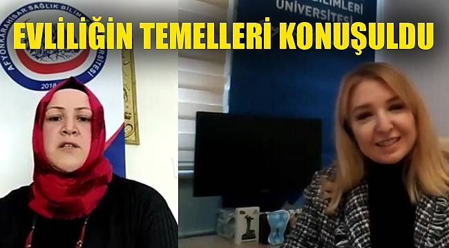2021 Afyonkarahisar Aile Yılı kapsamında AFSÜ’de düzenlenen ilk etkinlikte, Aile Danışmanı, Profesyonel Eğitim Uzmanı ve Yaşam Koçu Müjgân Gölçük Yağcı evliliğin temelleri hakkında seminer verdi. AFSÜ Basın-Yayın ve Halkla İlişkiler Biriminden Öğr. Gör. Ceyda Hancıoğlu Karaman’ın moderatörlüğünde çevrim içi yapılan etkinlikte, evlilik kurumunun sağlam bir zeminde kurulmasının ve sürdürülmesinin önemi üzerinde duruldu.