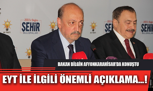 Bakan Bilgin, ‘2023 Doğru Şehir Buluşmaları’ kapsamında Afyonkarahisar’a geldi. Toplantı kapsamında basın toplantısı gerçekleştiren Bakan Bilgin, gündemdeki sıcaklığını koruyan EYT’ye değindi. Açıklamasında ETY konusunda birkaç formül değil, tek formül üzerinde çalışma yaptıklarını kaydeden Bakan Bilgin, “Bu konuyla ilgili şunu söyleyeyim bir defa. Birçok televizyon kanalında çeşitli uzmanlar ellerinde kalemle hesaplar falan yapıyorlar. Onların hiçbiri bizim önümüzde yok öncelikle onu söyleyeyim. Televizyonda çıkarıyorlar işte ‘şunlarda girecek bunlar da çıkacak’ öyle bir şey yok. 1999 yılı öncesi biliyorsunuz yaş ile ilgili bir sorun var. O sorunu biz çözüyoruz. Önümüzde tek bir model var yani çok sayıda insan var tahmin edeceğiniz gibi. Onların teker teker durumlarını, primlerini, çalışma gün sayılarını, yılları gibi, bunları gözden geçirip, en uygun en kapsayıcı çözümlemeyi yapacağız. Niye şimdi açıklamıyorsunuz diyenler var. Henüz çalışmamız bitmedi. İkincisi adım adım açıklıyoruz. Zaten açıklasak da ocak ayından sonra uygulamaya sokulacak. Şimdi açıklamanı bir anlamı ve acelesi yok. Biraz önce bahsettiğim sorunları adım adım açıklayacağız. Aralık’ta da inşallah mecliste aralık ayının ilk haftası çalışma tertip ettiler. Meclise aralık ayında intikal ettireceğimizi zaten paylaştım” dedi. >>Hayati Kanat