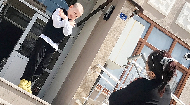 İlkokul birinci sınıf öğrencileri, 23 Nisan şiirlerini evlerine kadar gelen öğretmenlerine balkondan okudu