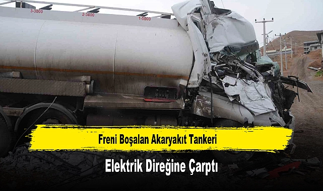 Freni Boşalan Akaryakıt Tankeri Elektrik Direğine Çarptı