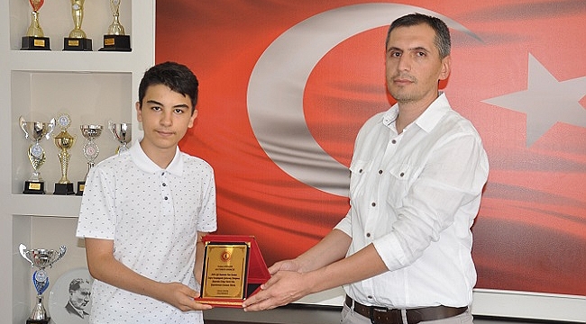 Öte yandan Okul Müdürü Savaş, Türkiye birincisi Furkan Gökkaya’ya çeyrek altın ve plaket takdim etti.