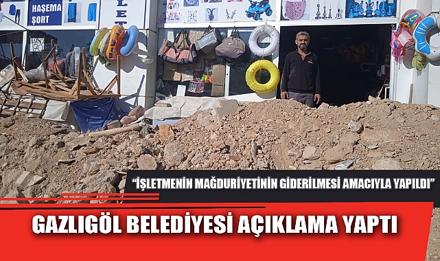 Geçtiğimiz günlerde yaşanan olayın ardından basın kuruluşlarının olayı haberleştirmesinin ardından Gazlıgöl Belediye Başkanlığı Vekili Av. Emre Çınar imzasıyla yazılı bir açıklama yapıldı. Açıklamada, kazının el ile yapılan hassas kazı olduğu iddia edildi. Açıklamada, “Müvekkil Gazlıgöl Belediye şirketine ait olan Midas Termal Otel'de zemin katında bulunan kira süresi sona ermiş olan dükkan önündeki kazı çalışması Midas Otel işletmesinde su basıncının yeterli gelmemesi sebebiyle, otel işletmesine müşterilerinden sürekli şikayetlerin gelmesi hasebiyle, çözüm bulmak ve ilave şebeke hattı bağlantısı arama amacıyla yapılmıştır. Kazı yapılan güzergah boyunca yer altında elektrik, jeotermal su, içme suyu, kanalizasyon ve telefon şebeke hatlarının olması nedeniyle alanda dikkatli kazı çalışmaları gereksinimi hasıl olmuş, bu itibarla söz konusu kazı çalışmaları iş makinaları aracılığı ile değil el ile hassas kazı olarak dikkatli bir şekilde yapılmakta olup, kazı işleminin uzun sürmesinin yegane sebebi budur. Kaldı ki söz konusu kazı çalışması sadece bahse konu vatandaşın 2 numaralı dükkanının önünde değil, aynı sırada yer alan 6 numaralı dükkanın önünde de yapılmıştır. Bu doğrultuda, söz konusu kazı çalışması otel işletmesinin mağduriyetinin giderilmesi amacıyla yapılmıştır” ifadelerine yer verildi. >>İHA