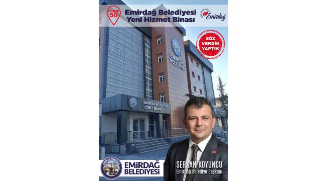Emirdağ Atatürk Kültür Parkı yanında bulunan ve eskiden Kredi Yurtlar Kurumuna hizmet veren bina, Belediye Başkanı Serkan Koyuncu’nun girişimleriyle belediyeye kazandırıldı. Başkan Serkan Koyuncu yaptığı açıklamada, gurbetin başkenti Emirdağ’a yakışır bir binayı vatandaşların hizmetine sunduklarını ifade ederek; “Vatandaşların daha hızlı ve etkin bir hizmet verebilmek amacıyla kapasitesi artırılarak kamu düzeninden sorumlu birimler tek çatı altında toplanıp hizmet verilmeye başlanmıştır. Modern bir şekilde düzenlenen yeni belediye binamızı ulaşımı kolay ve vatandaşlarımıza karşı standartlarımızı yükselterek Gurbetin Başkentine yakışır bir binayı hemşerilerimizin hizmetine sunduk” dedi.