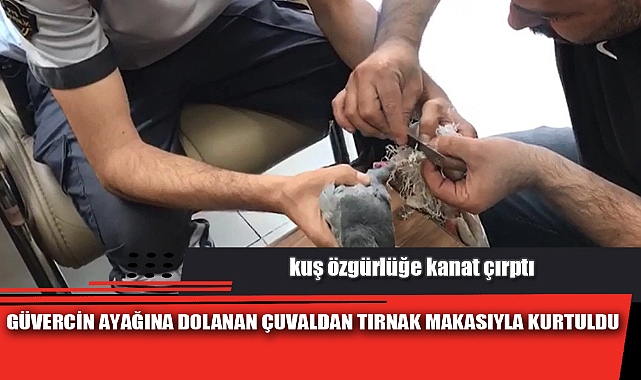 GÜVERCİN AYAĞINA DOLANAN ÇUVALDAN TIRNAK MAKASIYLA KURTULDU