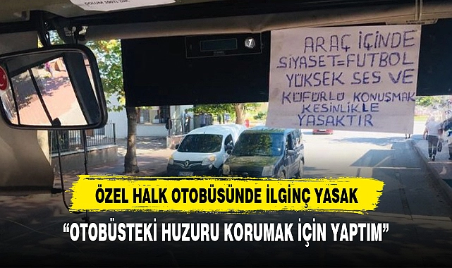 Belediye Halk otobüsünde çıkan tartışmalar sonucunda otobüs şöforleri Araç İçinde Siyaset, Futbol, Yüksek Ses ve Küfürlü Konuşmak Kesinlikle Yasaktır’’ yazısı asıldı.aracın ön camının sağ üst tarafına astığı yazıyı gören yolcuların memnuniyet duydukları