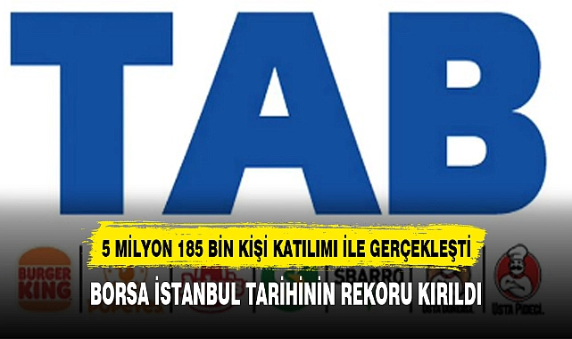 Borsa İstanbul'da halka arz edilen TAB şirketinin arzına rekor sayıda başvuru yapıldı. Yapılan başvuru ile Borsa İstanbul tarihi'nin halka arz rekoru kırılmış oldu