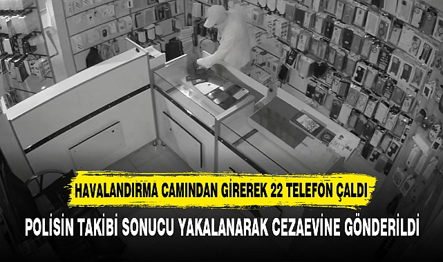 Bir telefoncu dükkanına havalandırma camından giren hırsız içeride bulunan 22 telefonu çalarak kayıplara karıştı. Polis ekiplerinin iz sürmesi sonrasında yakalanan hırsız tutuklanarak cezaevine gönderildi. Film sahnesini aratmayan hırsızlık anı işyeri içerisindeki güvenlik kameraları tarafından görüntülendi.