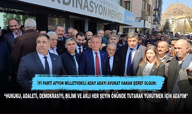 Av. Olgun: “Milletimiz, yeni bir iktidarla, güçlü bir Türkiye yoluna devam etmeyi açıkça beyan etmiştir. Binlerce yıllık İyi'lik medeniyetinin bir yolcusu olarak, 14 mayıs'tan sonra millet adına üstleneceğim görevi; hukuku, adaleti, demokrasiyi, bilimi ve aklı her şeyin önünde tutarak yürütmek için adayım. Doğup büyüdüğüm bu topraklara, kurtuluşun ve kuruluşun, zaferin başkenti kadim şehir Afyonkarahisarımız'a hizmet etmek benim için onurdur. Milletimize hizmet etmenin en kuvvetli yolunun siyaset olduğunu gördüm. Bu nedenle siyasi kimliğimle karşınızda oturuyorum. Bugün burada; siz değerli hemşehrilerimize, bu değerler ışığında görev almak amacımla milletvekili aday adaylığımı açıklamaktan onur duyarım. Değerli Hemşerilerim, Bizler milletvekili adayları olarak Afyonkarahisar için çalışmaya, hemşehrilerimize hizmet etmeye azmettik. Açık yüreklilikle ifade etmek isterim ki; 14 Mayıs sadece partimiz ya da biz milletvekili adaylarının değil, bizzat Afyonkarahisar halkının destanı olacaktır. Milletçe çok yıprandık. Çok acılar yaşadık. Ekonomik olarak büyük bir çıkmaz içerisindeyiz. Afyon’umuz da bu düğüm düğüm olan ekonomiden ziyadesiyle etkilenmiş durumda. Pazarda tezgah açan Ayşe Teyzemin de, sokakta okuduğu kitaplarını satan 12 yaşındaki Ali kardeşimin de çabası, evine ekmek götürme kaygısının sorumluluğuna ortak olmak için burada yanınızdayım. Ama bu zor günleri hep birlikte aşabilmek için bu gün el ele vermek, birlikte yürümek zorundayız.” dedi.