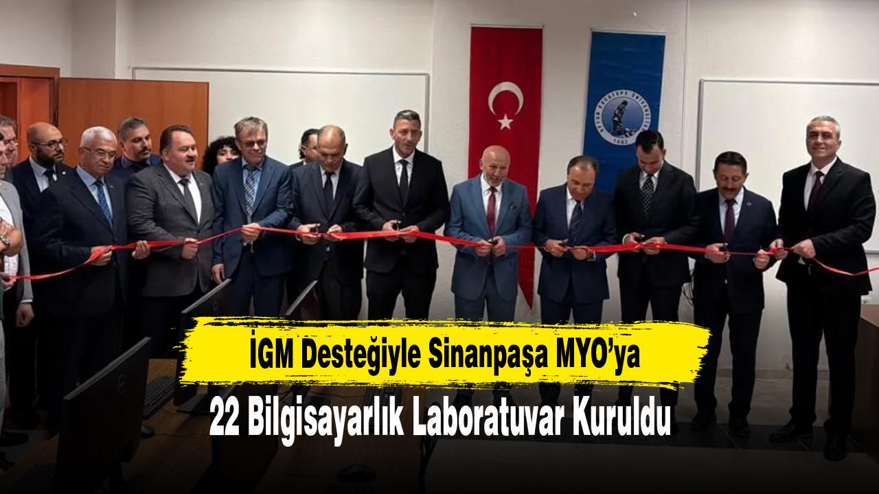 İGM desteğiyle Sinanpaşa MYO’ya 22 bilgisayar kazandırılarak Bilgi Teknolojileri Laboratuvarı hizmete açıldı.