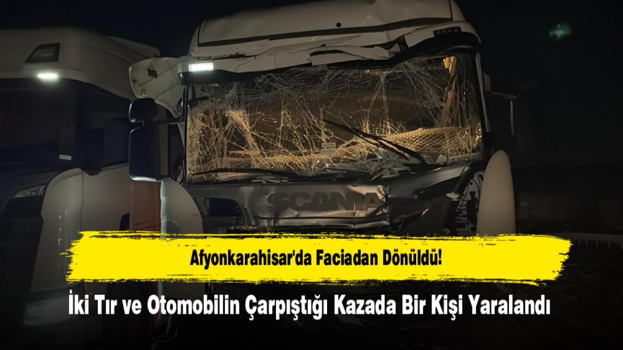 Afyonkarahisar'da iki tır bir otomobilin karıştığı trafik kazasında faciadan dönülürken kazada şans eseri bir kişi yaralandı.