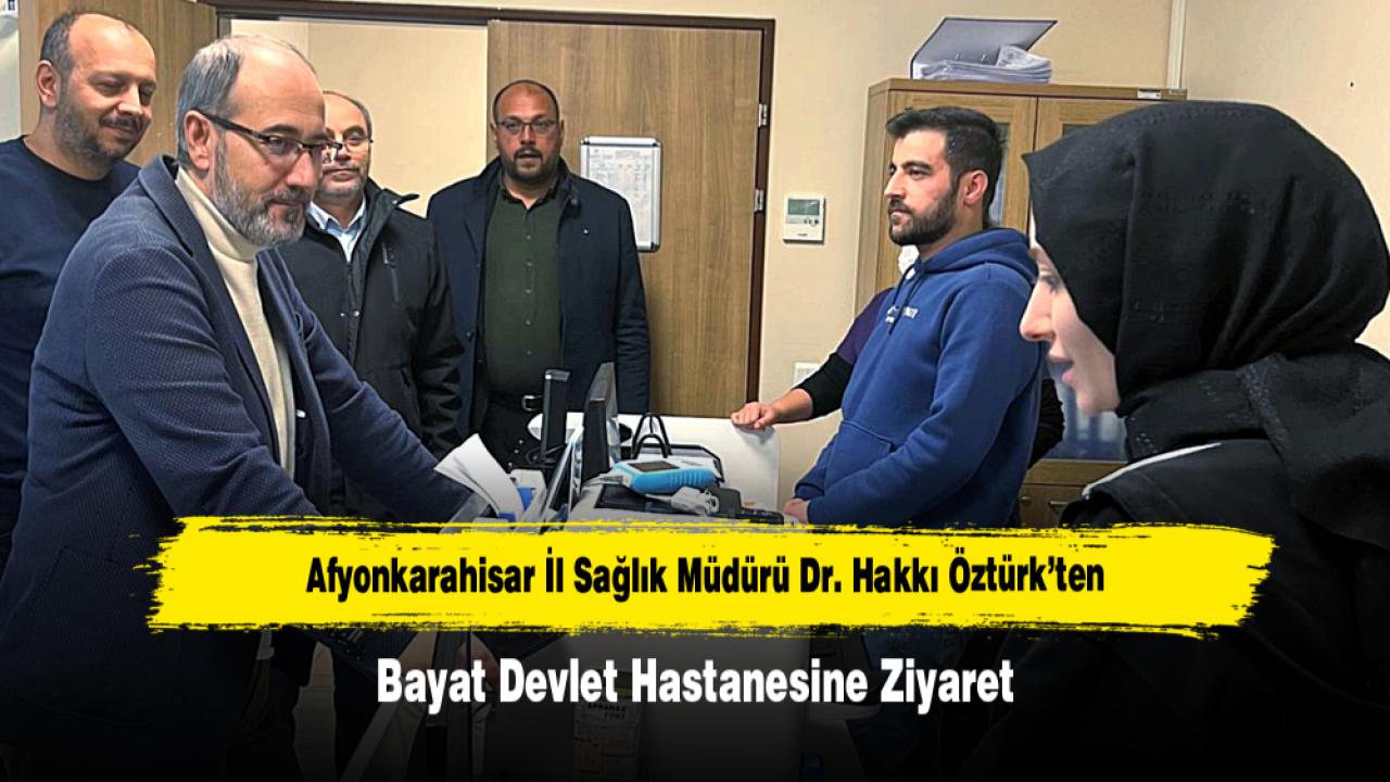 Afyonkarahisar İl Sağlık Müdürü Dr. Hakkı Öztürk, hafta sonu programı kapsamında Bayat ilçesini ziyaret ederek Bayat Devlet Hastanesi ve Bayat 112 Acil Sağlık Hizmetleri İstasyonu’nda incelemelerde bulundu.