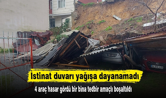 Yağış sonrası toprak kayması nedeniyle istinat duvarı çöktü. Çöken duvar nedeniyle 4 araç hasar alırken, 1 bina ise tedbir amaçlı boşaltıldı.