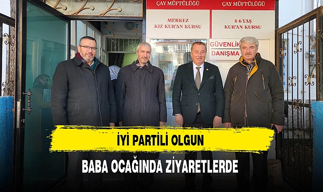 İYİ Parti Genel Başkan Yardımcısı ve Afyonkarahisar Milletvekili Hakan Şeref Olgun ilçedeki Kur’an Kurslarını ziyaret etti. Ziyarete Olgun’a Çay Müftüsü Şevket Karaca ve müftülük personeli eşlik etti. Yetkililere teşekkür eden İYİ Partili Olgun; ‘’ Çay ilçemizde Müftülüğümüze ait Kız ve Erkek Kur'an Kurslarını ziyaret ettim. Bana eşlik eden Çay Müftümüz Şevket Karaca’ya ve kurs yöneticilerimize gösterdikleri yakın misafirperverliklerinden dolayı ve rahmetli babam Ali Olgun için indirilen Kur'an hatmi için teşekkür ederim.’’ Dedi.