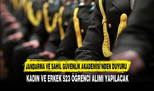 Resmi Gazete'de yayımlanan ilana göre, Jandarma Genel Komutanlığının muvazzaf subay ve astsubay ihtiyacının karşılanması maksadıyla, Jandarma ve Sahil Güvenlik Akademisi Başkanlığına 483 erkek ve 40 kadın olmak üzere toplamda 523 öğrenci temini yapılacak.